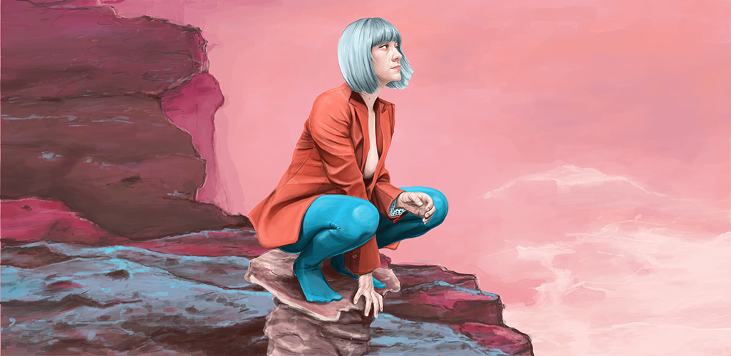 “Crouching Woman Rocky Mountain” (Digital painting)